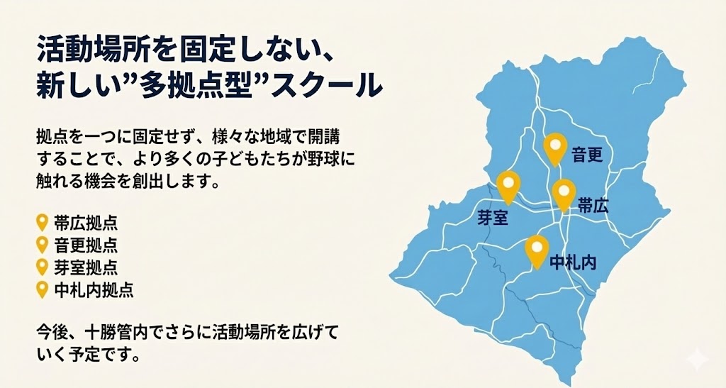 スクールについて Father and son preparing for a game of softballAbout us スクールの特徴 1.3つのコース設定 お子様の野球経験や運動経験に合わせたコースを選択することができます。 2.多拠点型のスクール 現在は、上記の4地域で開講する予定です。会場の詳細は、後日公表します。 3.スクールが主催する月に一度の”特別なイベント” 月に1回のイベントでは、野球にこだわらない特別な時間を提供いたします。
