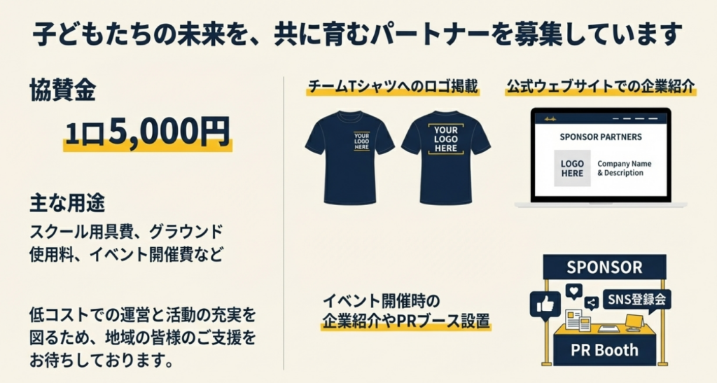 企業の皆様へ istockphoto-157182299-612×612Sponsor Recruitment 企業の皆さまへ ご支援を募集しています 子ども達が安価で安心して野球に取り組める環境を提供するために、スポンサー企業様を募集しております。地域に愛され、応援される活動を展開しています。活動を一緒に盛り上げ、応援していただける企業様を心より歓迎いたします。 協賛金の使用用途 スクールで使用する用具費スクールで利用するグラウンド使用料各種イベントの運営費個人用具の補助費 など スポンサーに応募する スポンサーシップ スポンサーに応募する